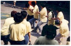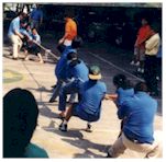 basketball shootout, tug-of-war, longest line and find-your-own-shoe.